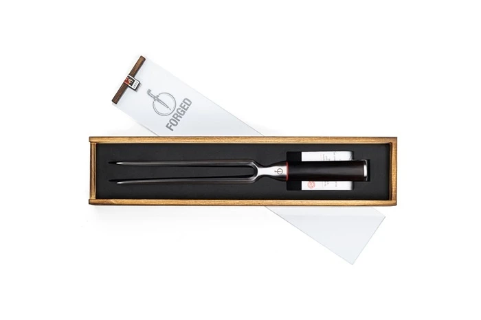 De vleesvork heeft een lemmetlengte van 20cm met twee scherpe punten en een handvat van 11 cm. Het handvat is gemaakt van smaakvol olijfhout.
