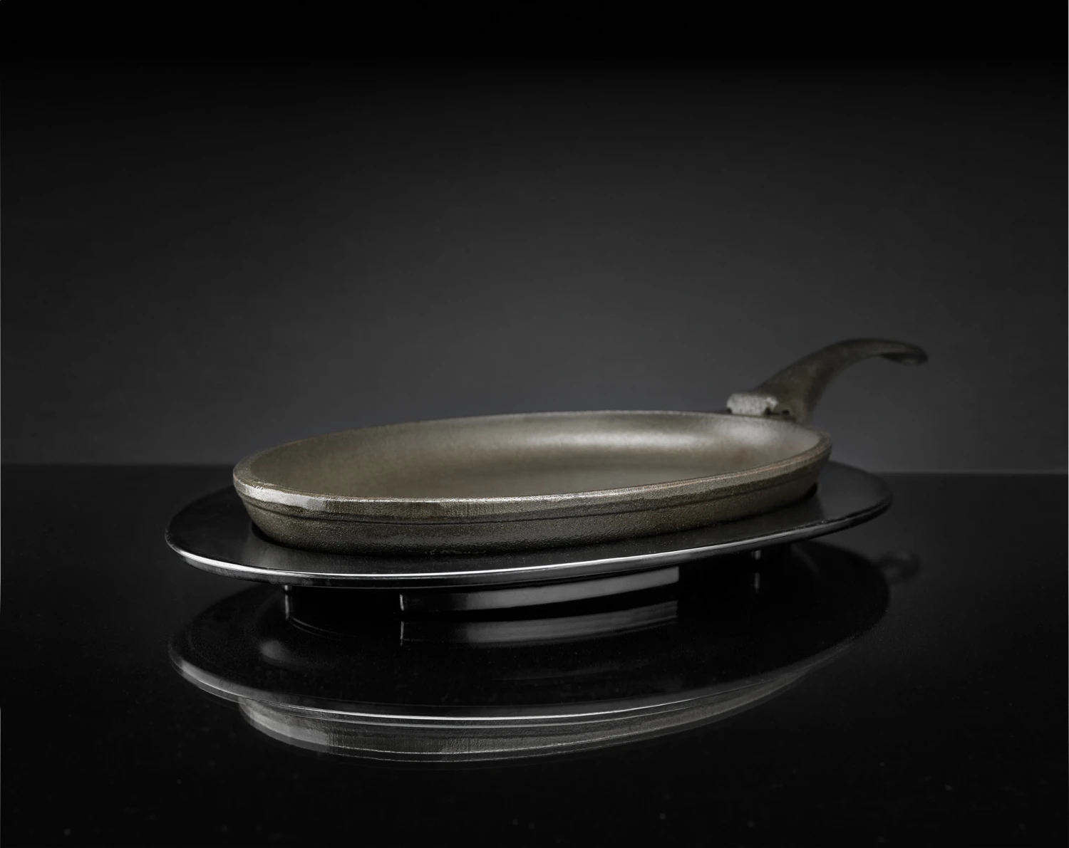 In de Gietijzeren pan kun je geweldig vlees, vis of groenten bereiden in een recordtijd. Het voedsel behoudt zijn sappen en smaak. Ook leuk om bijgerechten en sauzen in te bereiden.Â