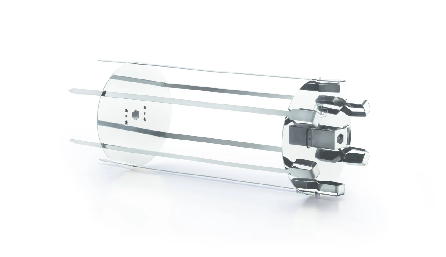 Deze set past op alle rotisseries en maakt het mogelijk veel om veel verschillende producten op je spit te bereiden, zoals vis of vleesspiesjes maar ook lekkere groente spiesen. Doordat de spit draait worden de ingrediënten gelijkmatig gegaard zonder dat je er een vinger naar uit hoeft te steken.